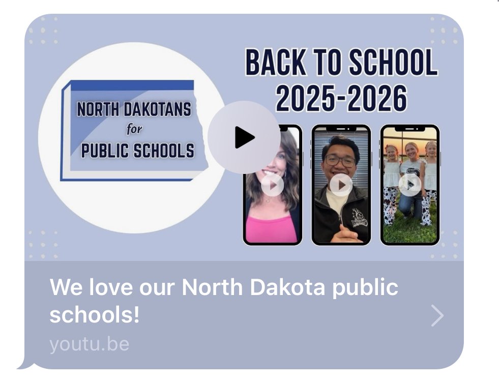 9/2/2025 - In keeping with our mission to strengthen, protect, and CELEBRATE public education, and with the help of families and friends from across North Dakota, ND4PS created and just releasedthis heartfelt video to express our sincere appreciation for those who labor - in this case, all of our public school educators - and to cheer on our kids for a great school year!